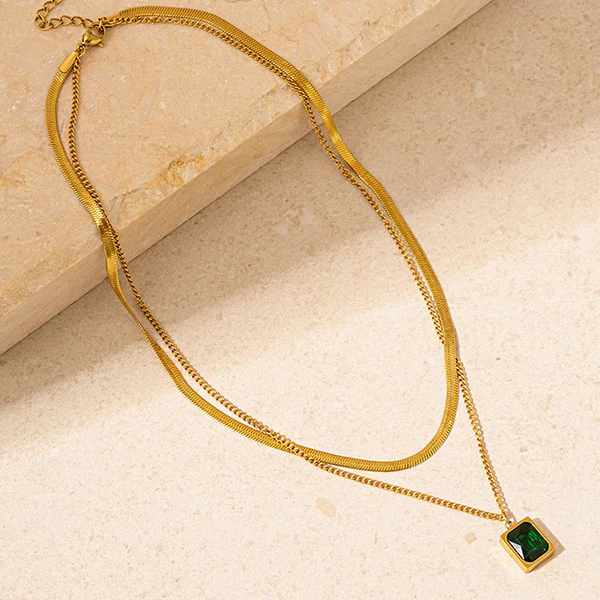Be the first to review “Gold-Plated Anti Tarnish Green Emerald Geometric Layered Necklace”