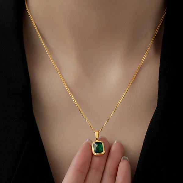 Gold-Plated Anti Tarnish Green Geometric Pendant