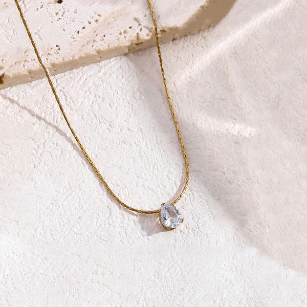 NeckpieceThis Gold Plated Stainless Steel Anti Tarnish Tear Drop CZ Pendant For Women balances design, versatility, and craftsmanship, making it an ideal addition to any collection.